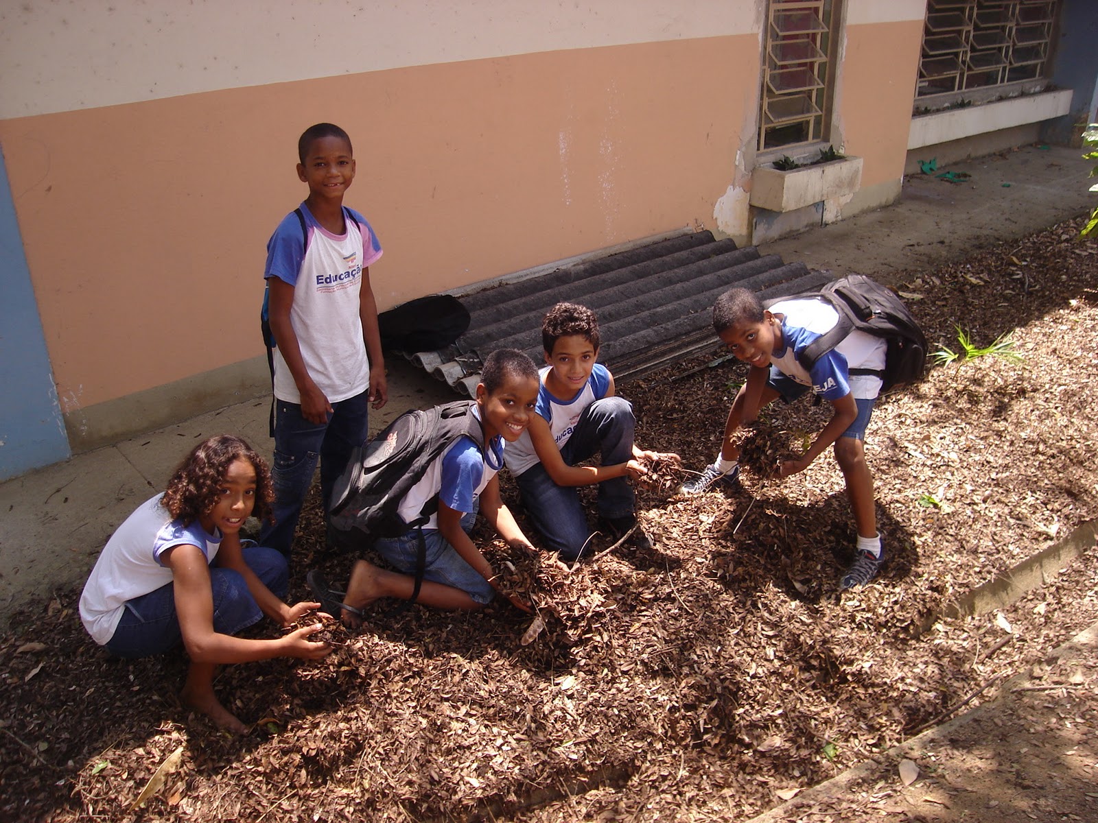 Recentemente as folhas acumuladas nos telhados da EMJB (em manutenção) foram transferidas para os canteiros, trazendo fartura de matéria orgânica...